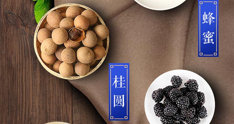 酸枣仁、桑葚、茯苓、黄精、百合、桂圆、枸杞子、蜂蜜